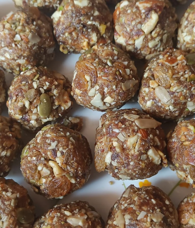 Indulge in our delicious and nutritious homemade laddus and snacks.